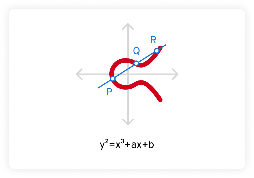 Additionally, any line not perpendicular to the elliptic curve intersects the curve at no more than three points. In the example below, these points are marked as P, Q, and R.